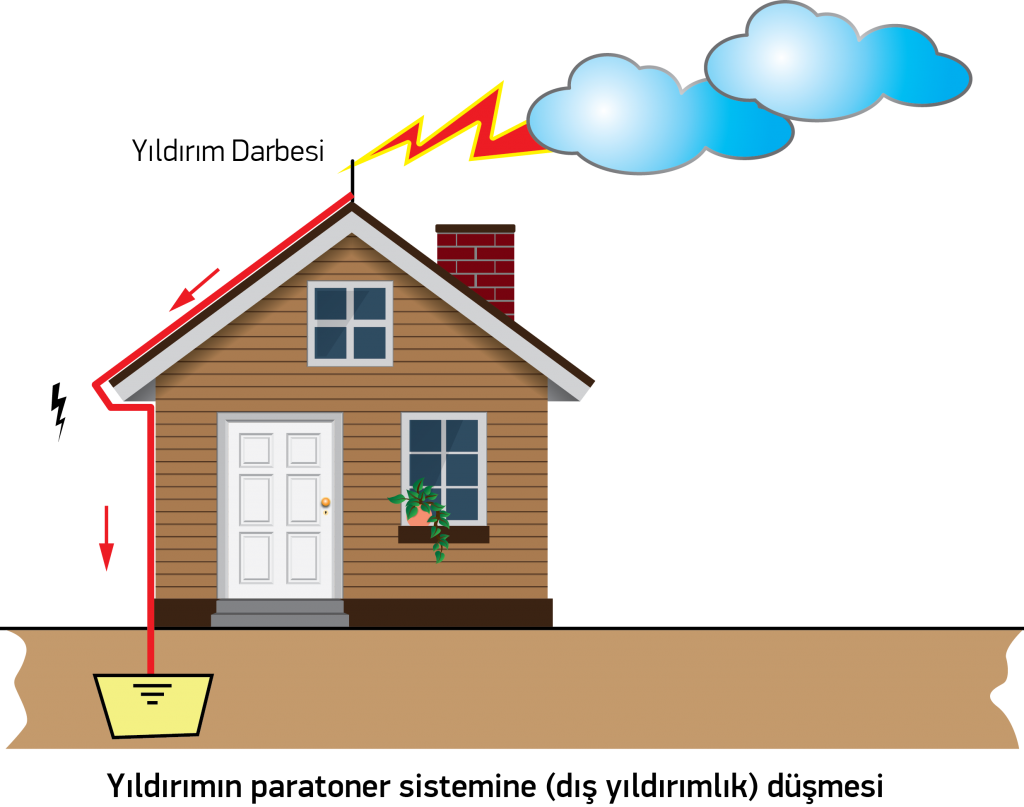 Aynı şekilde, elektrik tesisatlarının yıldırım ihtimaline karşı korunması ve olası bir yıldırım düşmesi durumunda, aniden biriken enerjinin sisteme zarar vermeden toprağa iletilmesi gerekir. Bunun için de paratoner sistemleri kullanılmalıdır. Yıldırım, güçlü bir enerji potansiyelidir ve korunma sistemi olmadığı sürece yıldırımın vereceği zararları önlemek mümkün değildir.